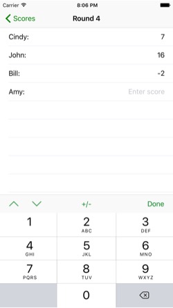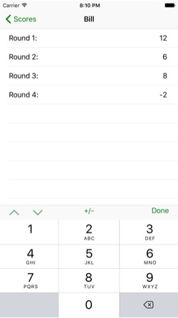 - • Editable scores history for each player